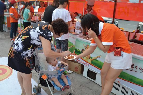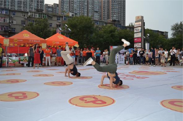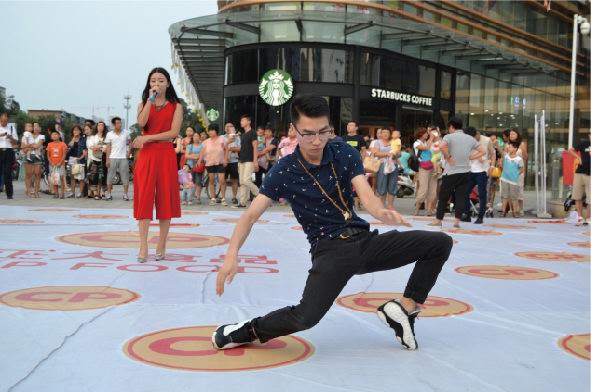 活動時長大約30分鐘,首先快閃人員在王府井南昌路店門口廣場中央集合,穿戴著簡單大方、整齊利索的衣物四處游走在人群中。時間一到,音樂響起,歌手慢慢走近中央,一首振奮人心的“我和你”拉開整個活動的序幕,瞬間引起了在場所有人群的關注。緊接著舞蹈演員閃亮上場,展開了一場激情澎湃的機械舞,帶動現(xiàn)場觀眾情不自禁參與到表演中來,此時人流迅速聚攏,引起圍觀。然后正大食品有限公司員工身著公司服裝,唱著正大集團《愛是正大無私的奉獻》一起出現(xiàn)在廣場中央,隨后幾段歌舞串燒將現(xiàn)場氣氛推向***,在觀眾意猶未盡之時迅速閃開在人群之中?;顒舆^程中穿插進行了分發(fā)公司宣傳材料、食品安全知識宣傳單,現(xiàn)場觀眾品嘗了洛陽正大豬肉調理品、醬鹵產品及集團現(xiàn)代食品。
