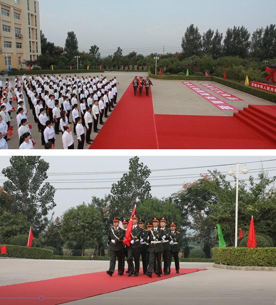 早上八時零八分,升旗儀式正式開始,在雄壯的軍樂聲中,颯爽英姿的護旗手邁著整齊的步伐護送國旗走向升旗臺。雄壯的《義勇軍進行曲》響起,鮮艷的五星紅旗冉冉升起,迎風(fēng)飄揚,全體員工手持鮮艷的五星紅旗行注目禮,共同高唱國歌,表達對新中國的崇敬和熱愛。